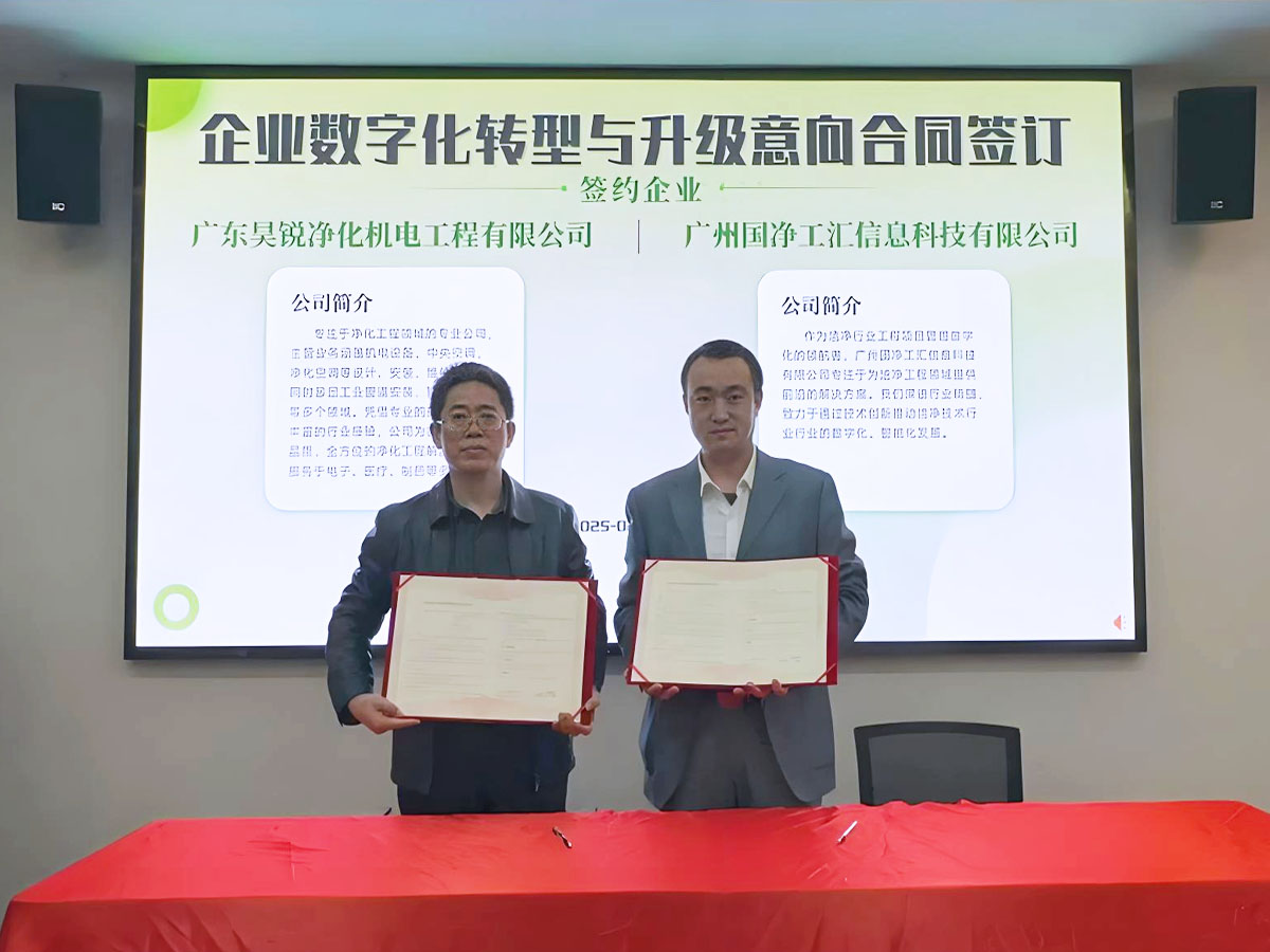 研討會期間,張勁松總經理簽訂了潔凈技術行業數字化轉型合作意向書,未來昊銳凈化公司將繼續深化數字化轉型,為客戶提供更智能、更高效的凈化工程整體解決方案。中國潔凈技術行業協會秘書長張仲杰:"廣東昊銳的數字化轉型實踐為行業提供了寶貴經驗,期待更多企業加入數字化生態建設。"